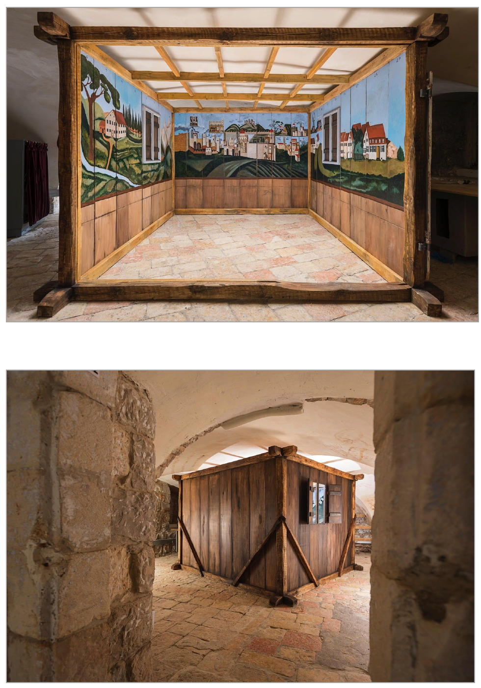 The paintings themselves have also undergone small but significant changes: in them, the walls of the synagogue feature graffiti inscriptions that attest to its transformation into a clinic, and the house of the Deller family (the former owners of the sukkah) now bears the names of the two families who live in it today—one German, the other Turkish.